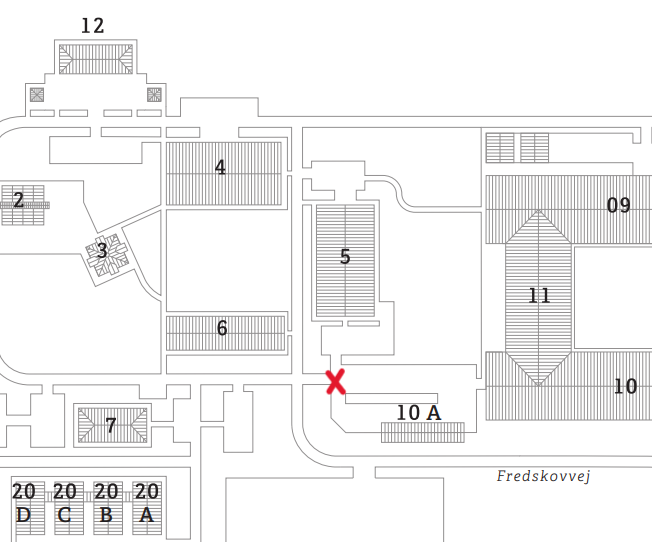 Vores food truck holder der, hvor det røde kryds er markeret