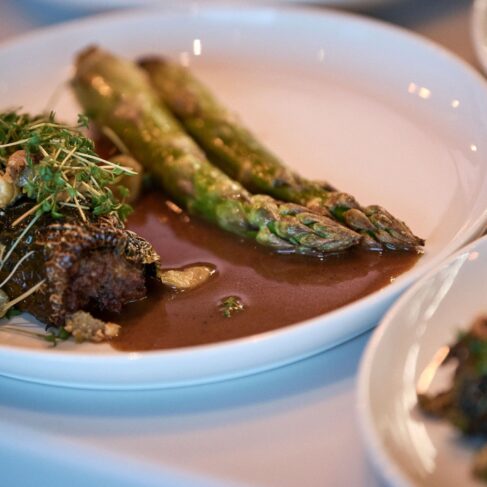 Vi bød på læskende drinks, og menuen var spækket med forårets guld, heriblandt asparges i alle afskygninger, nye kartofler og ikke mindst rabarber.