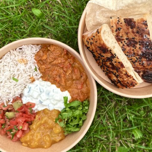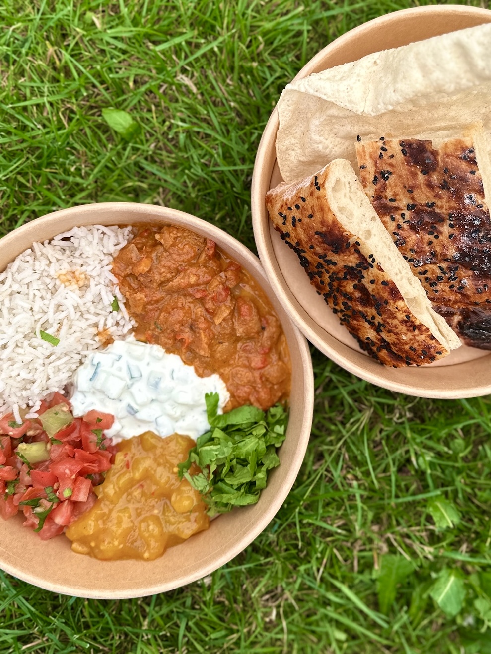 På menuen stod en fyldig butter chicken på dansk kylling, ledsaget af hjemmelavede kondimenter som vores egen mango chutney kogt fra bunden, en cremet raita og sprøde papadums. Derudover bød vi på friske salater med sæsonens bedste danske råvarer, hjemmebagt naanbrød på økologisk mel og forfriskende drikke.