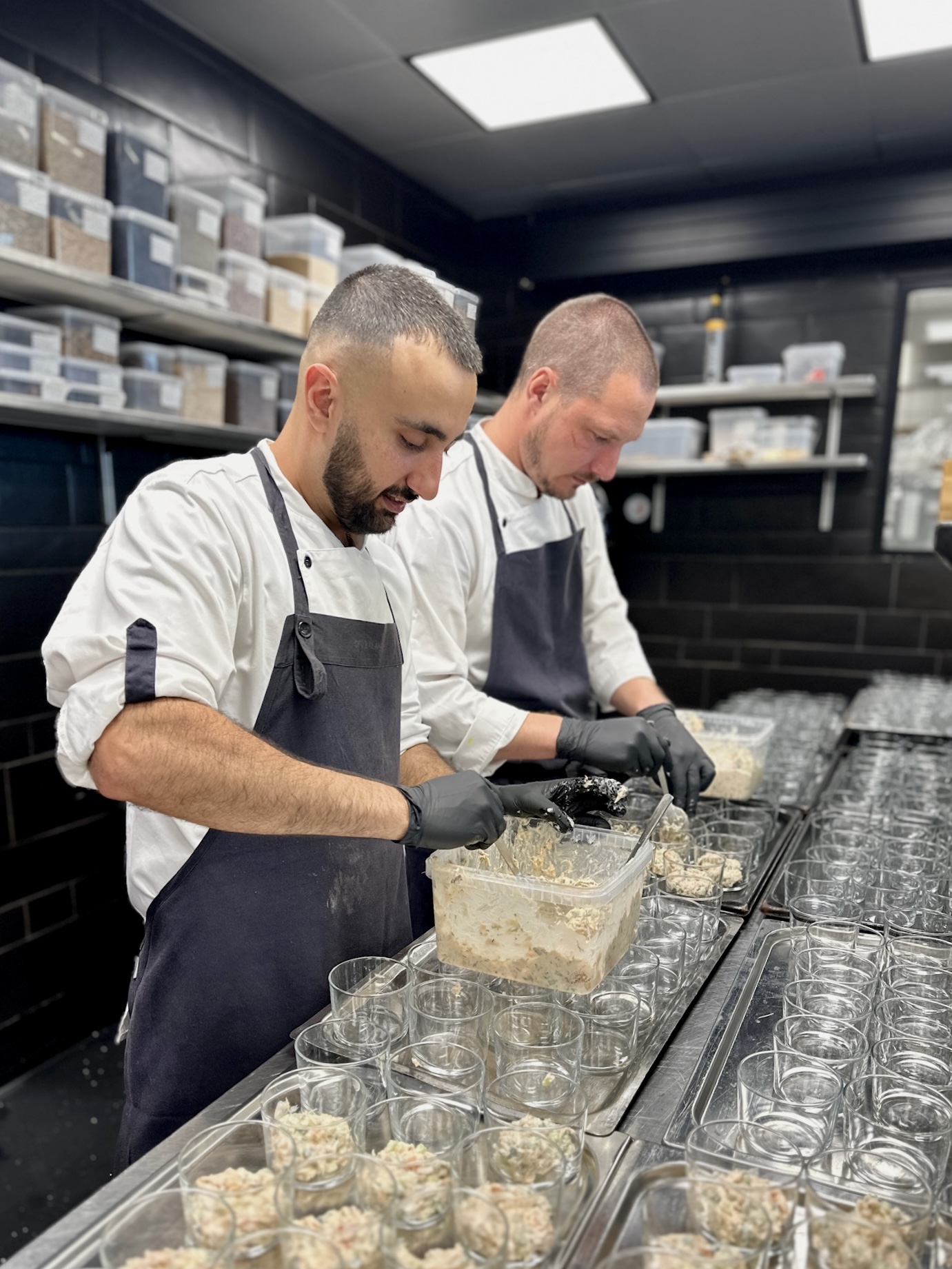 Aftenen bød på god stemning, hvor aftenens gæster kunne nyde et bredt udvalg af delikate anretninger. Heriblandt sprøde surdejstoast med saltet skinke og trøffel, små hapsere med fisk fra vores nabo, Havnens Fiskehus, samt velfærdskylling. Menuen blev rundet af med vores konditoris bedste desserter.