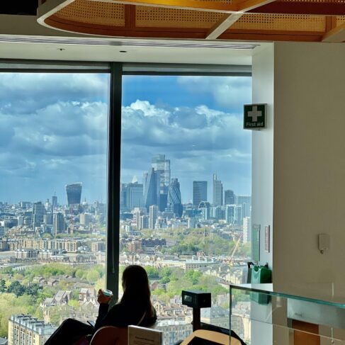 Det var imponerende kontorhuse, hvor vores kollegaer arbejder med gæster fra hele verden, og gør det i den smukkeste udsigt udover Themsen og London skyline.