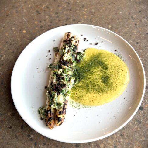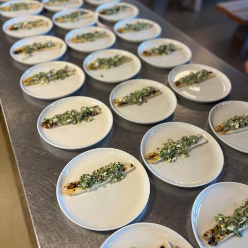 Grillede danske asparges a la’ vinaigrette med hollandaise og ristet rugbrød.