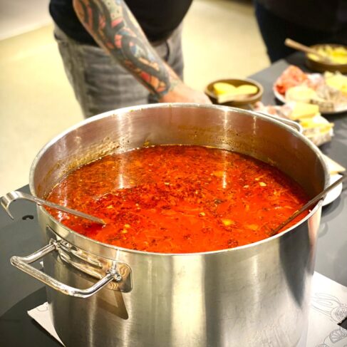 Dagen blev rundet af med en skøn middag tilberedt af CAMPUS, hvor menuen blandt andet bød på Irinas autentiske ukrainske borsjtj, friskbagt brød og lækre charcuterier.